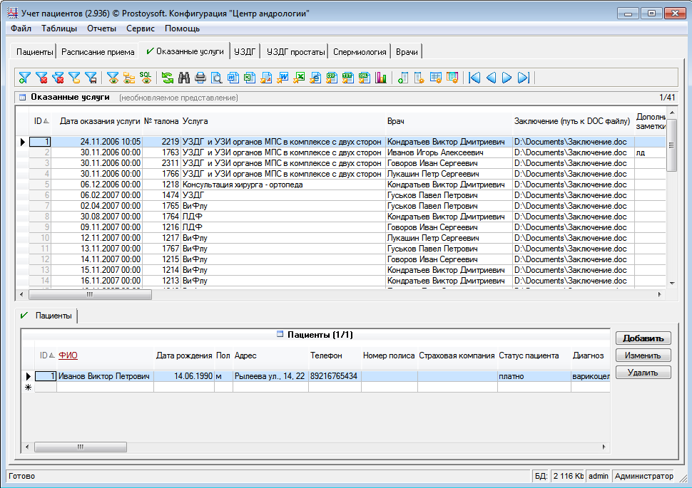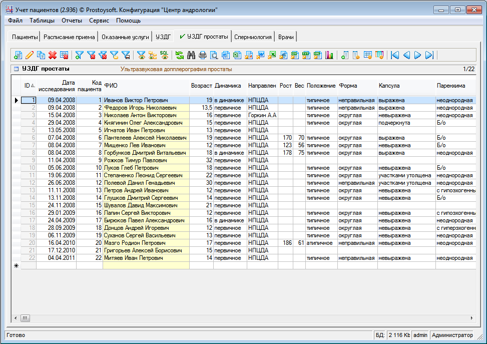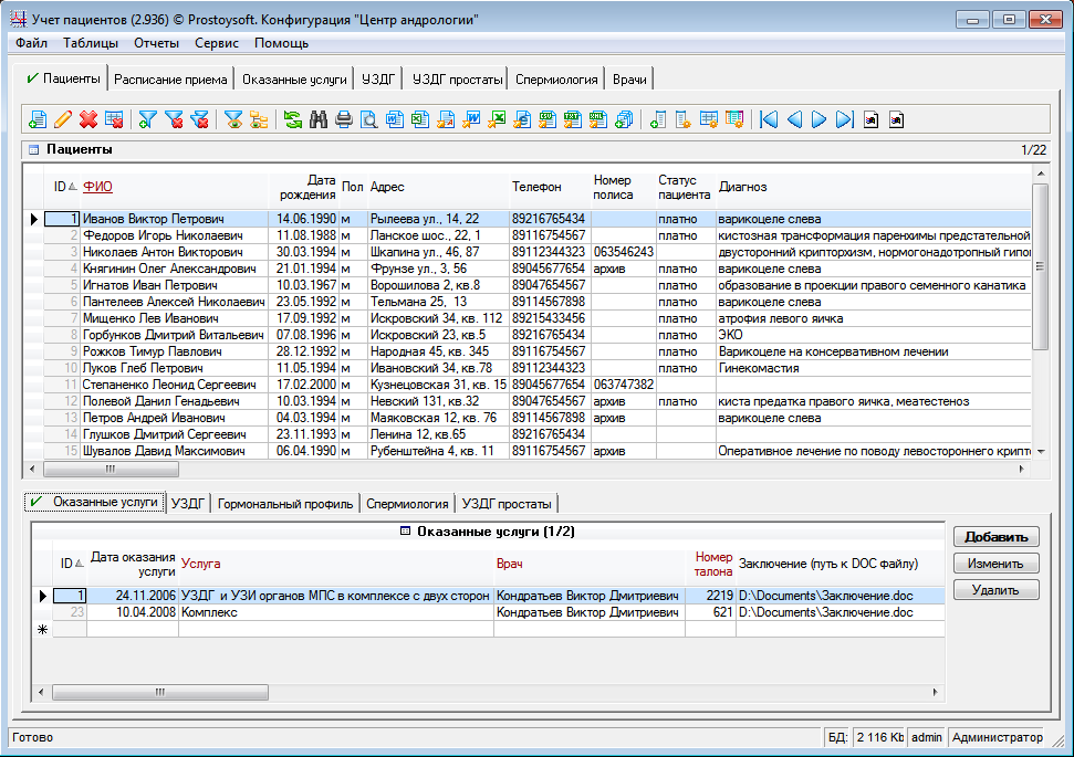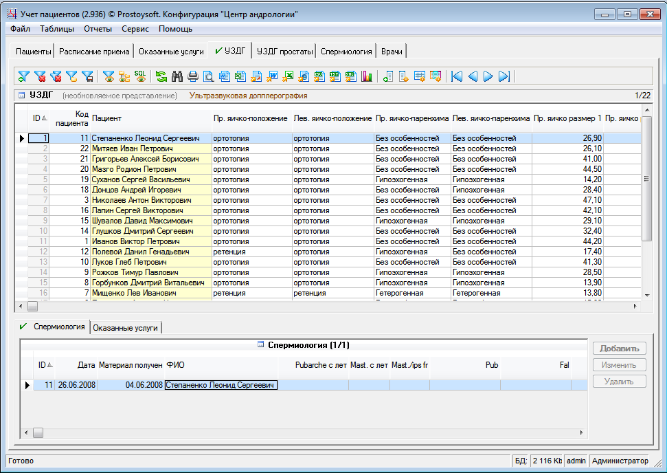 Программа "Центр андрологии" легко и быстро настраивается под индивидуальные требования самостоятельно.