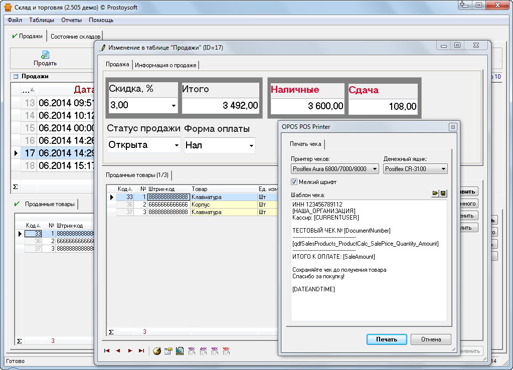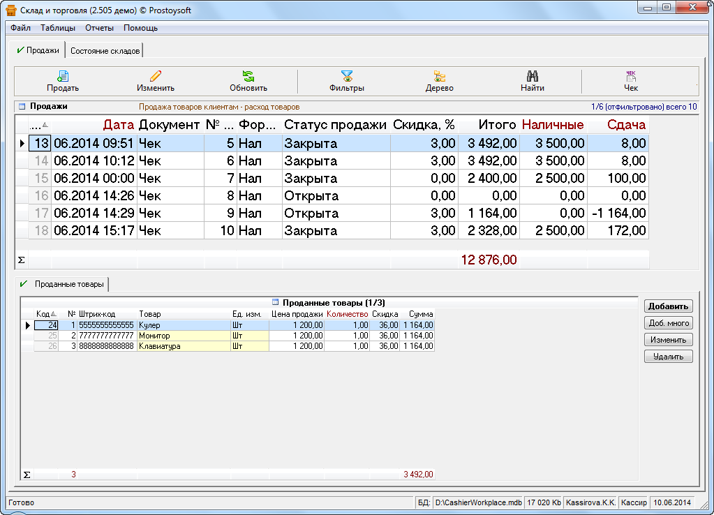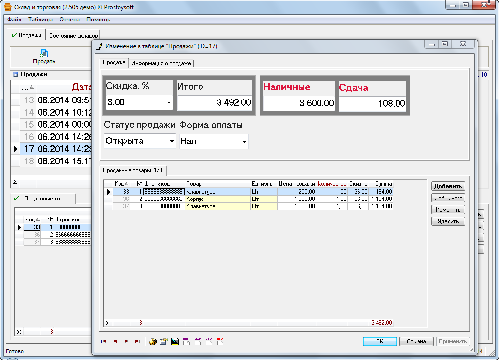 Основная функция в данной программе — продажа. Процесс состоит из двух частей: