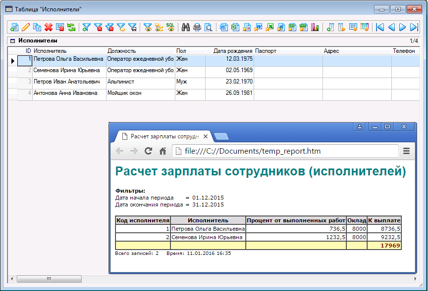 Гибкая структура базы данных дает возможность создавать новые таблицы, отчеты, графики, добавлять поля, формировать списки и многое другое. Программа учета интуитивно проста и понятна, не требует специальных знаний и квалификации в ИТ-сфере.