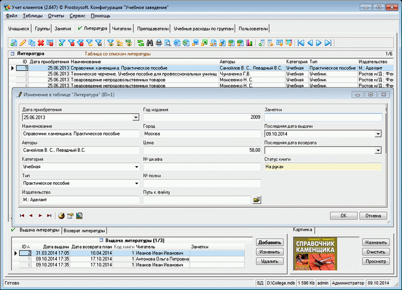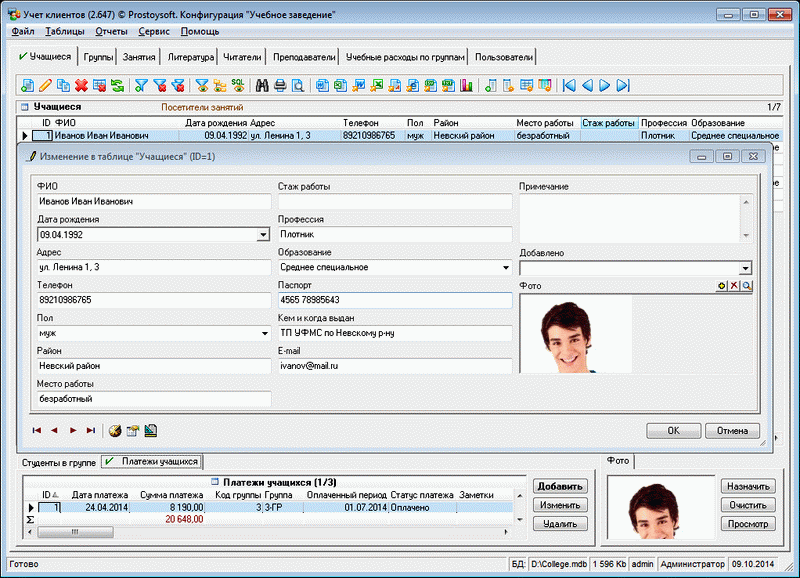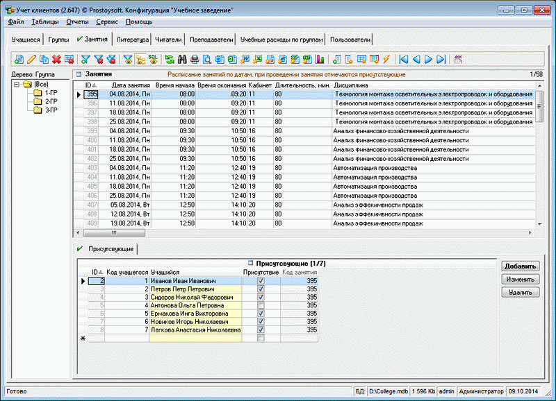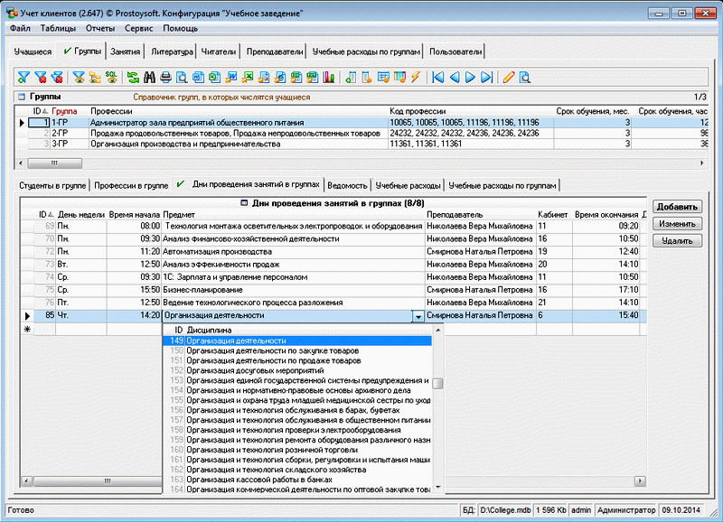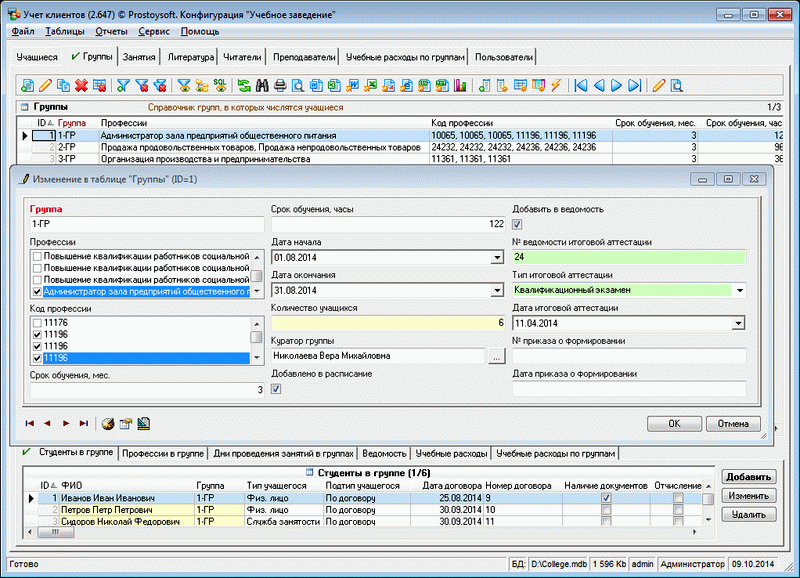 Программа "Учебное заведение" - предназначена для автоматизации учета в учебных заведениях. Программа для общеобразовательных учреждений обеспечит решение всех задач данной предметной области. Система учета для учебных центров позволит максимально сэкономить время на оформлении и обработке данных, и в следствии повысить качество обслуживания клиентов.