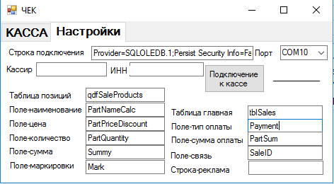 - Поля «Кассир» и «ИНН» берутся из таблицы «Сотрудники» с одноименных полей