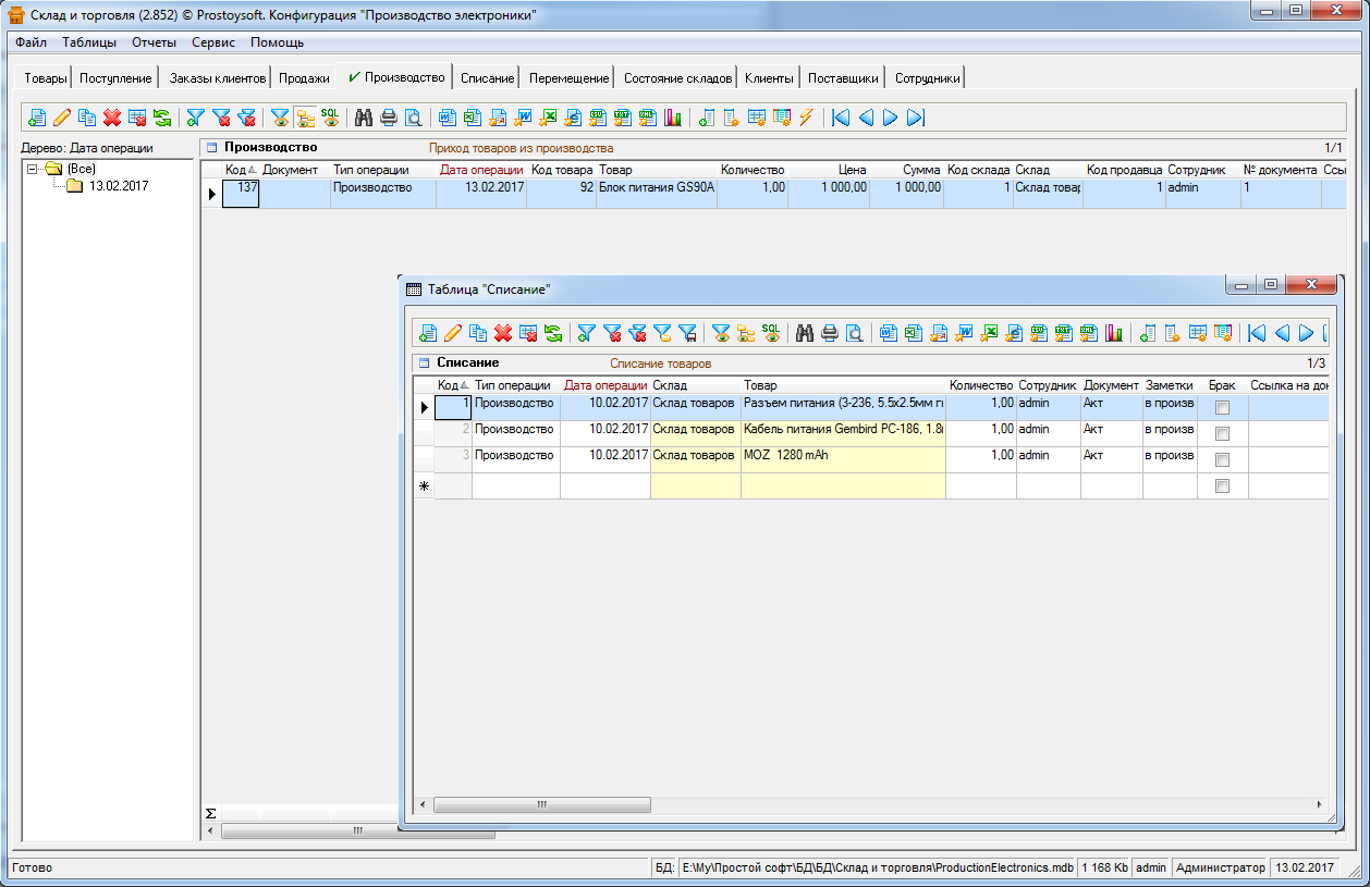 Программа "Производство электроники" - предназначена для автоматизации ведения учета производства и продажи электронных товаров. Данная конфигурация позволяет вести полную спецификацию по всем изделиям, формировать компоненты по изделию с последующим автоматическим списанием их при производстве. Вести учет поступивших заказов на производстве электронных товаров, формировать заказы поставщикам с последующим автоматическим оформлением прихода по ним, вести складской учет, генерировать приходные и расходные документы, вести аналитику продаж и заказов. Конфигурация легко и быстро настраивается под индивидуальные требования заказчика, как самими пользователями, так и нашими специалистами.